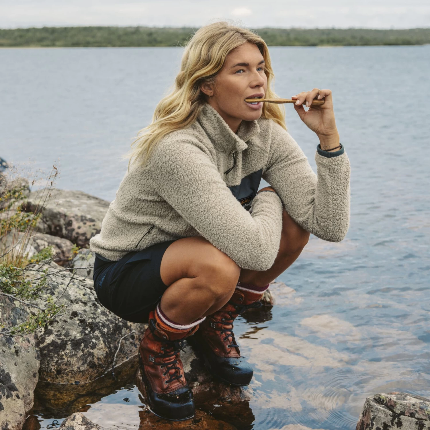 Het Flok Wool Pile jack is warm, veelzijdig en gemaakt voor lange wandelavonturen of gewoon een dagtocht door de halfwilde natuur achter je huis. De mix van merinowol en polyester zorgt voor hoogwaardige eigenschappen: De wol heeft warmteregulerende, geurremmende kwaliteiten, terwijl het polyester zorgt voor duurzaamheid en snel drogen. Een aangenaam warme stijl met een zuivere, normale pasvorm.